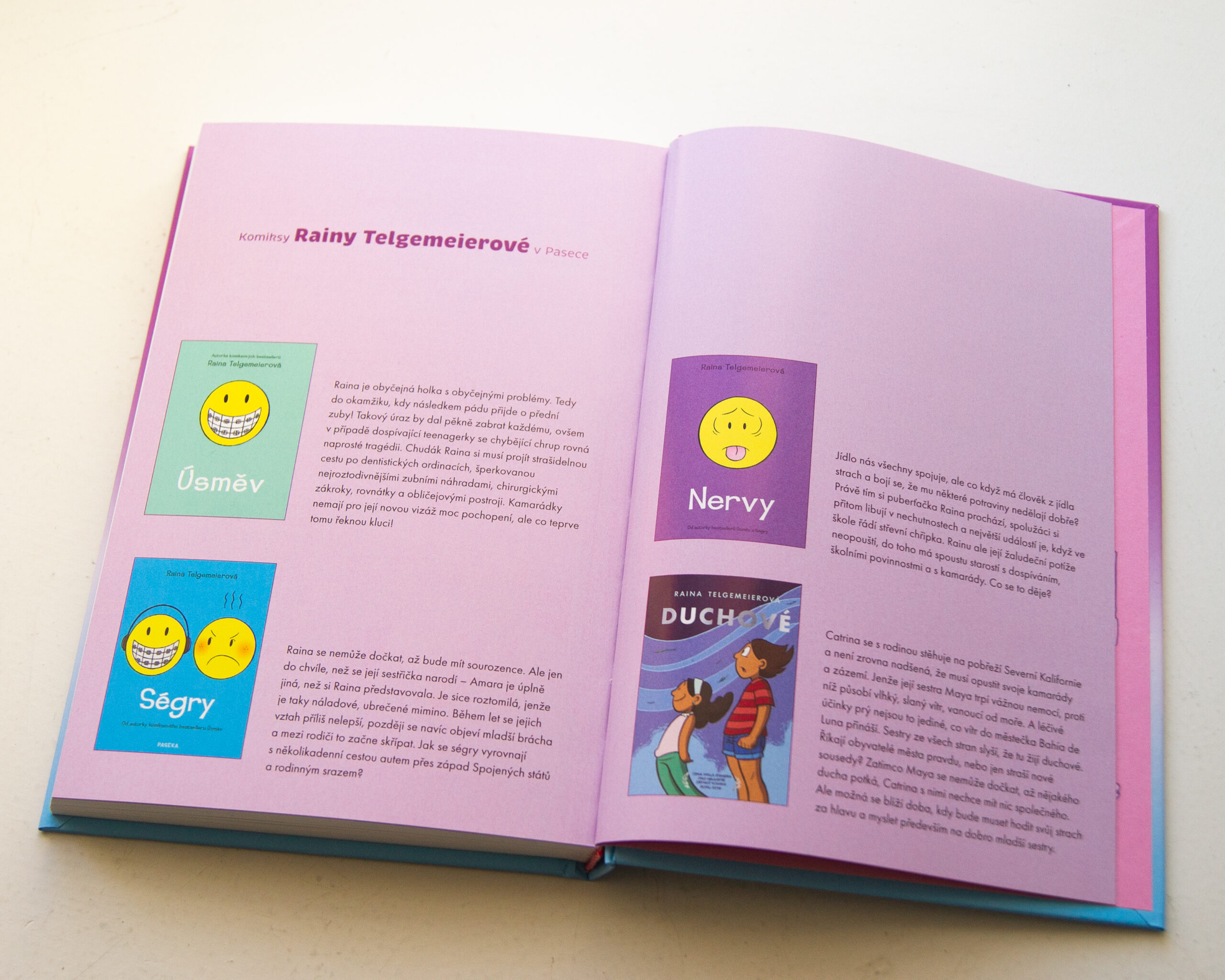 Raina Telgemeierová (1977) svým bestsellerem Úsměv (č. Paseka 2015) přilákala ke komiksu novou generaci žen a dívek. Za Ségry (č. Paseka 2016) obdržela jako první žena v historii komiksového Oscara — Cenu Willa Eisnera — pro autory, kteří svoje komiksy sami píší i kreslí. Úspěch sklidily i její komiksy Duchové (č. Paseka 2017) a Nervy (č. Paseka 2020). Když dospívala, naprosto ji okouzlila práce Scotta McClouda, s nímž se nyní setkává v jedné knize.